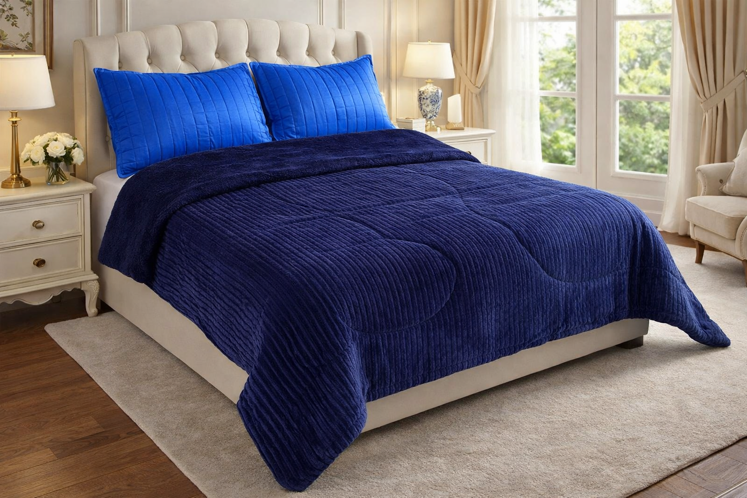 Este extraordinario cobertor está elaborado con tejido de peluche y una parte trasera de tela borrego, una combinación pensada para ofrecerte la máxima calidez y confort. Ideal para climas fríos, proporciona una experiencia única durante las noches más frescas, haciendo que tu descanso sea placentero y lleno de comodidad.
